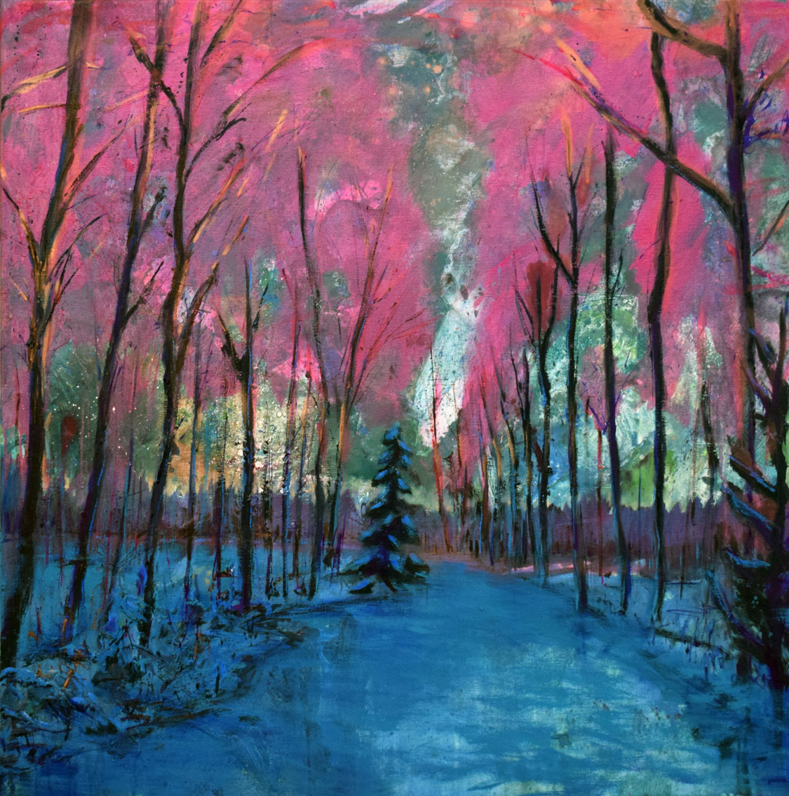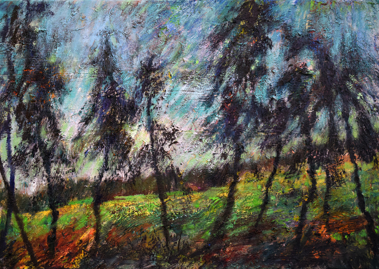 Avond aan de rand van het bos,100 x 100 cm en Ardennen, 50 x 60 cm